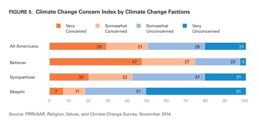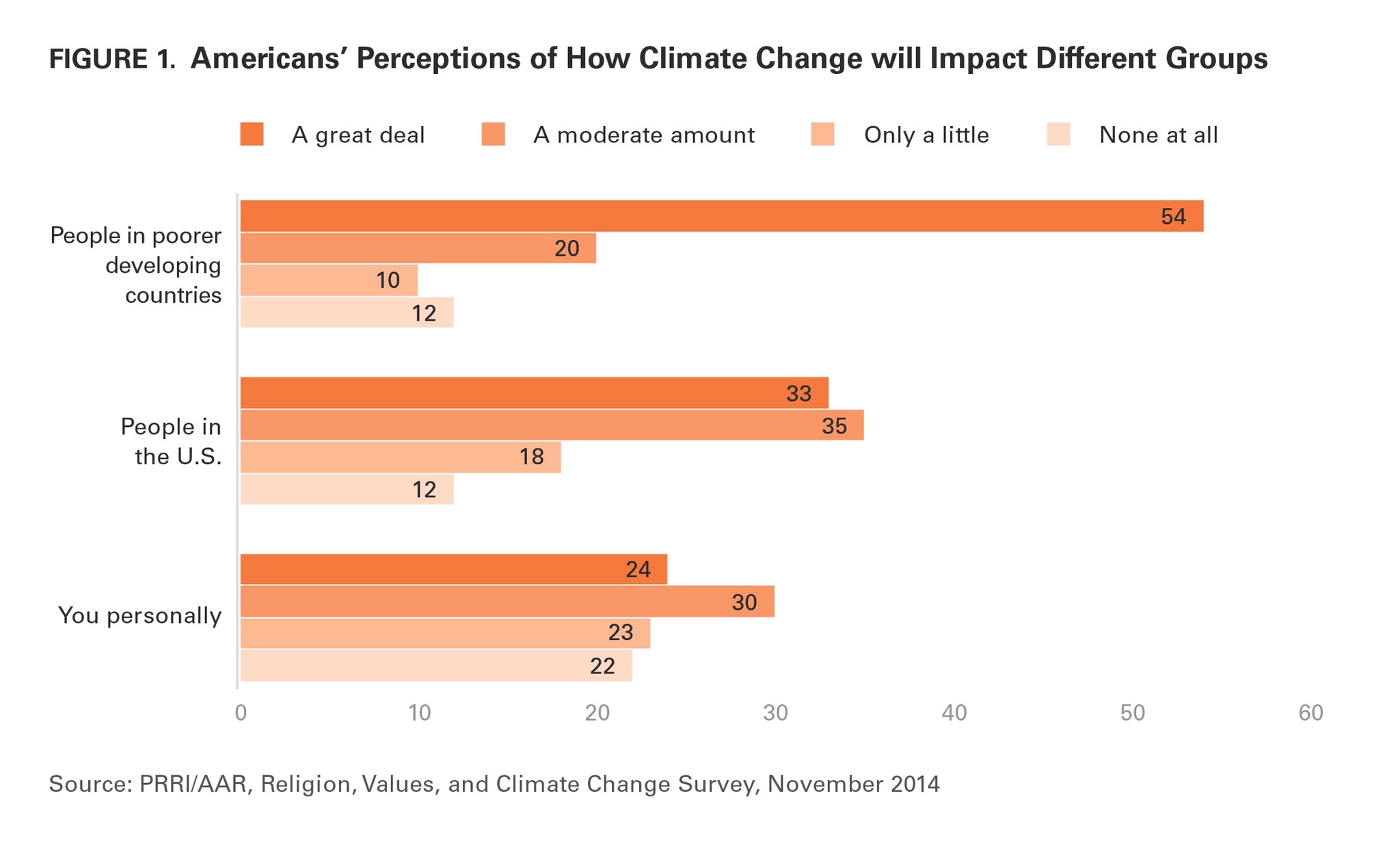 I draw from two main data sources: the Religion, Values, and Climate Change Survey published by Public Religion Research Institute and the American Academy of Religion on November 2014 (I worked on the design and analysis of this poll back when I was at PRRI); and the Pew Research Center’s Global Attitudes Survey from the Spring 2015. The PRRI poll says a lot about what Americans think about climate change while the Pew poll puts some of those opinions in a global context.