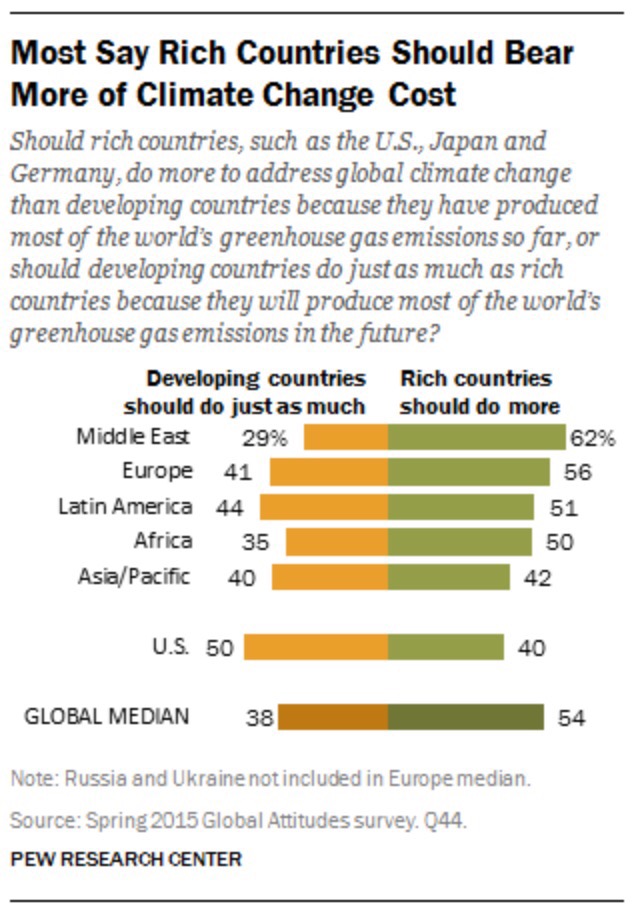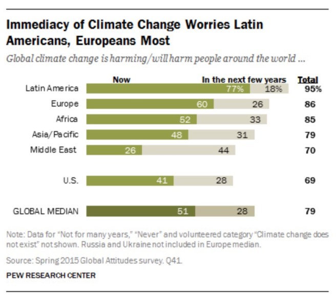 A majority of Americans think that “people in poorer developng countries” will be impacted “a great deal” by climate change. Only one-third of Americans think that climate change will climate change will impact people in the USA a great deal. It is a very selfish and foolish position. On one level, it is quite arrogant to believe that your country will be spared of the effects of something that will affect the whole damn planet. On another level it is also very foolish…in what ways is our country insulated from something that’s going on globally?