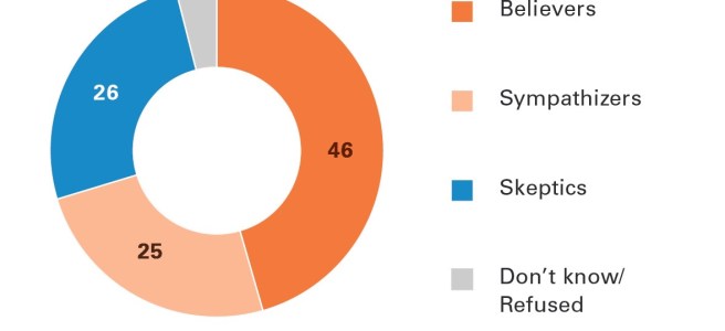 The PRRI survey developed three categories of attitudes about climate change: believers (who think it is happening), sympathizes (who agree it is a thing but not very concerned), and skeptics (who doubt CC is an actual thing). Luckily, the largest group is the “believers.” Unfortunately, less than half the USA population fits in this category.